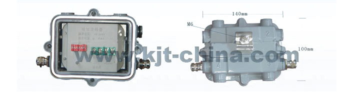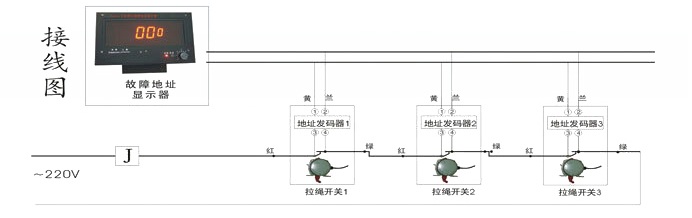 KJT-FSI配合跑偏開關、打滑開關、撕裂開關、拉繩開關的外置地址碼發送器,將地址發碼器裝在防水型鋁壓鑄外殼內,端子1、2接于通訊線,端子3、4與相應設備之常閉點并接。