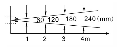 視場角度安裝距離1m時,視場范圍為φ170mm