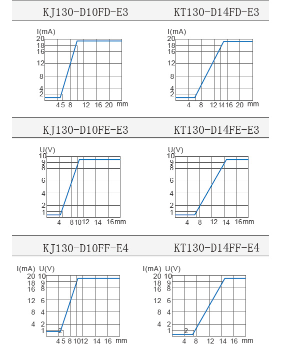 | 備注: 1.其它技術數(shù)據(jù)可向我們詢問。 2.各種模擬傳感器標準檢測體接近感應面,在規(guī)定的條件下,它們的可使用距離與輸出電流成比例,各曲線詳見備曲線圖。 ![]() | ||||